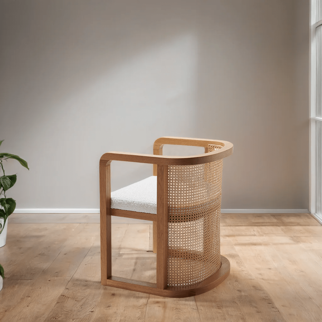 Chất liệu: Gỗ Tần Bì (Ash) + Mây + Nệm Bọc Simili or Vải Bố (thường)