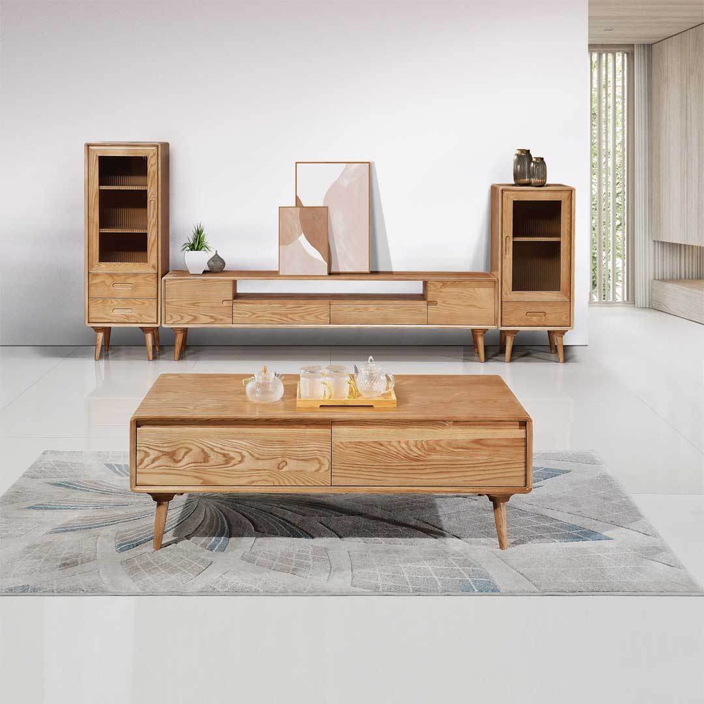 Chất liệu: Kính + Gỗ Tần Bì (Ash)_58% + Gỗ Cao Su Veneer Sồi_42%