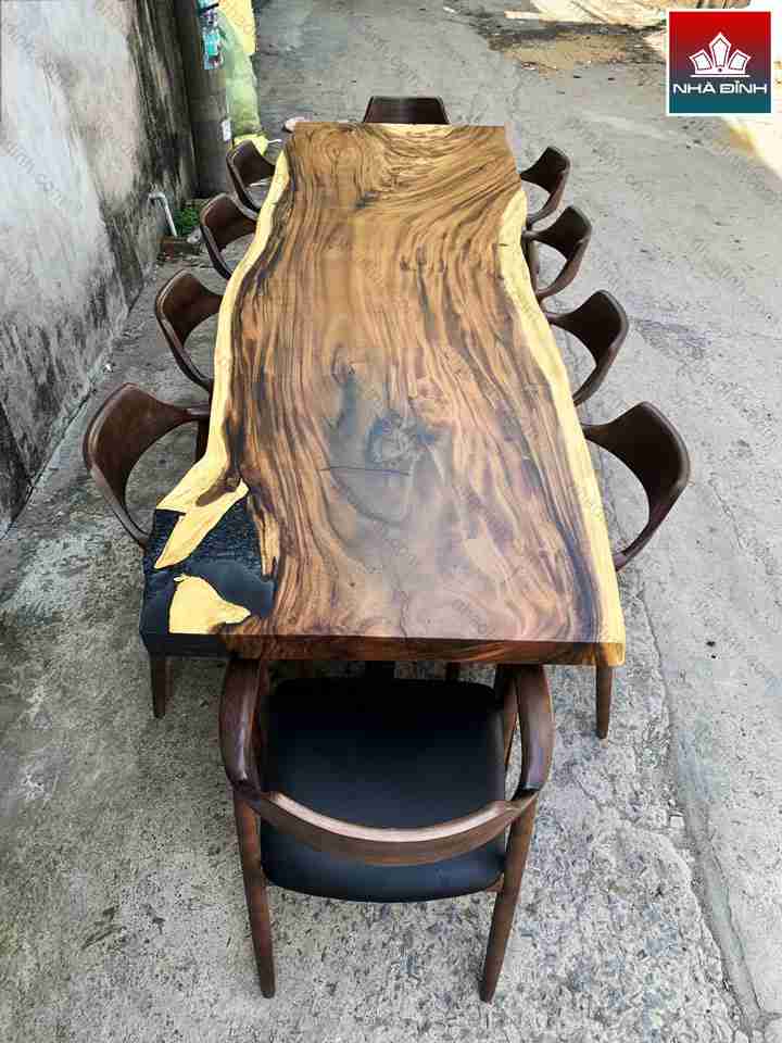 Bàn Ăn 10 Ghế Gỗ Me Tây Nguyên Khối Dài 300 Rộng 90-95 Dày 7 Cao 78 (cm)