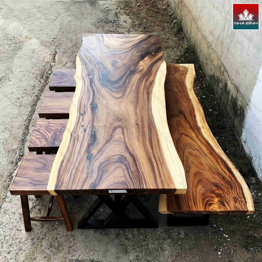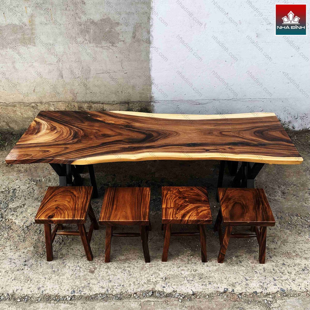 Bàn Ăn 4 Ghế 1 Băng Gỗ Me Tây Dài 215 Rộng 70 Cao 75 (cm)