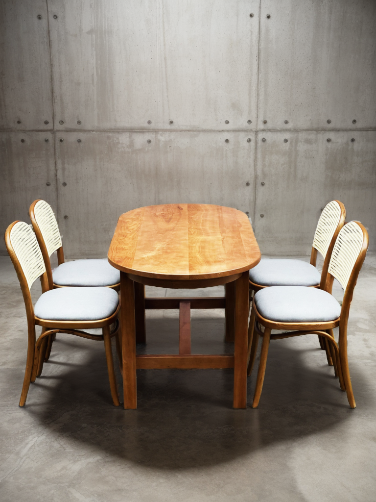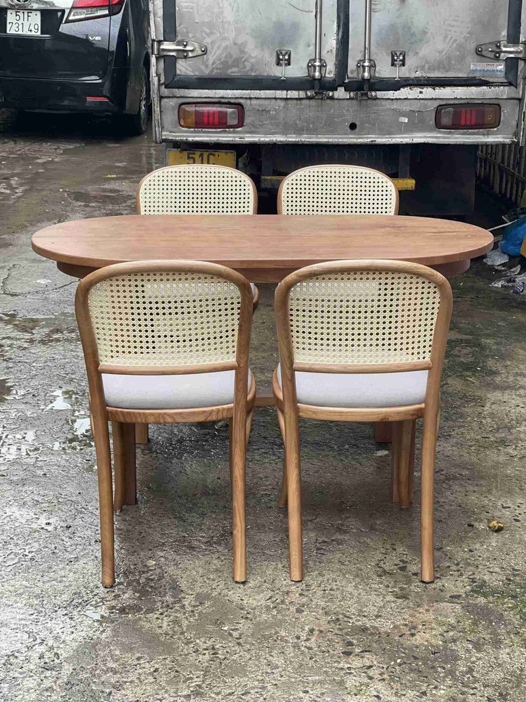Bàn Ăn 4 Ghế Hình Oval Gỗ Tần Bì (Ash) Dài 137 Rộng 70 Cao 75 (cm)