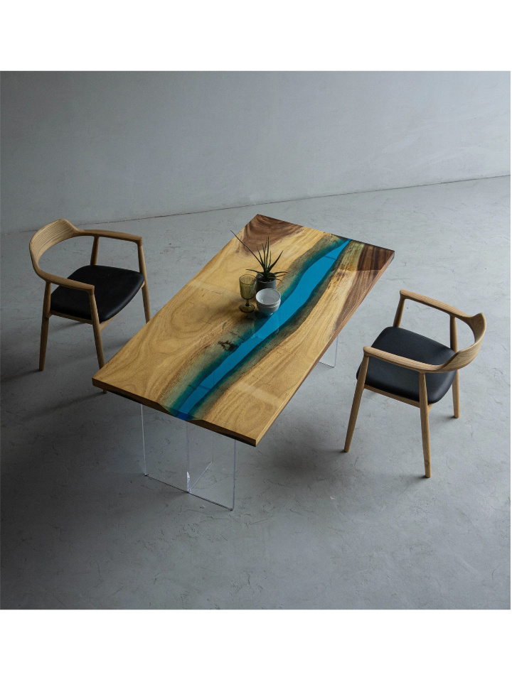 Bàn Ăn Epoxy Gỗ Me Tây Dài 160 Rộng 80 Cao 75 (cm)