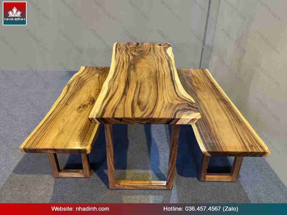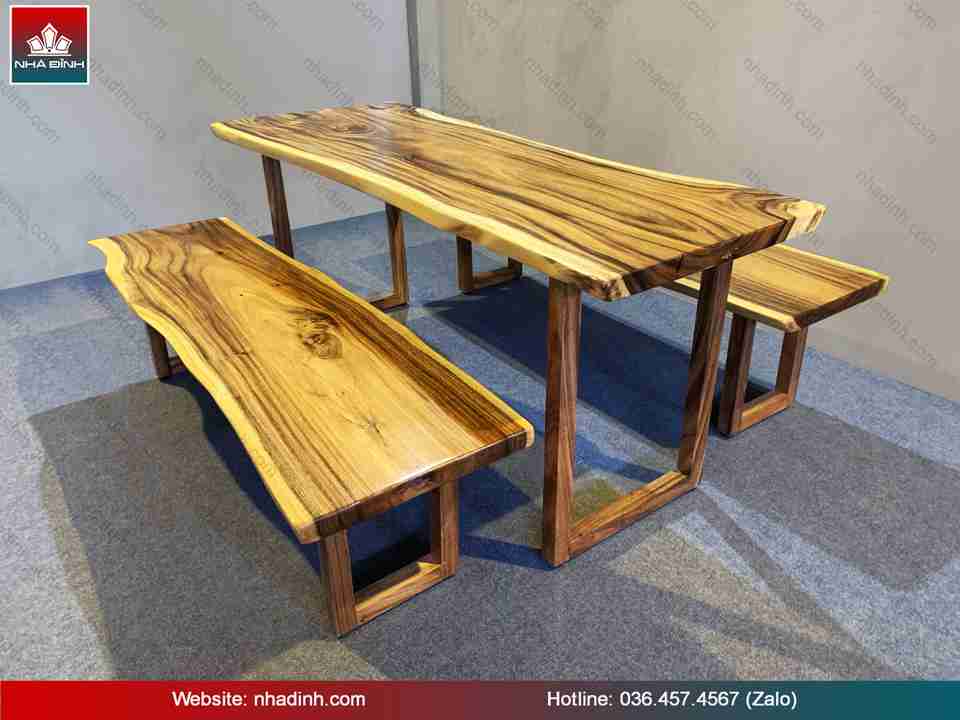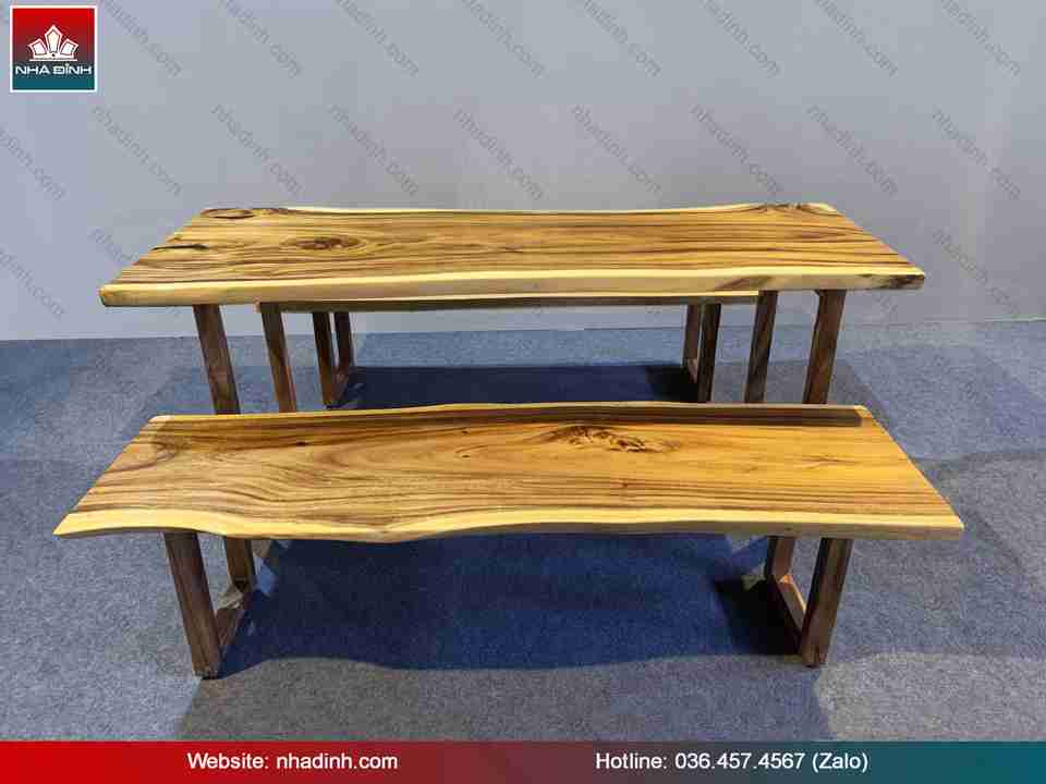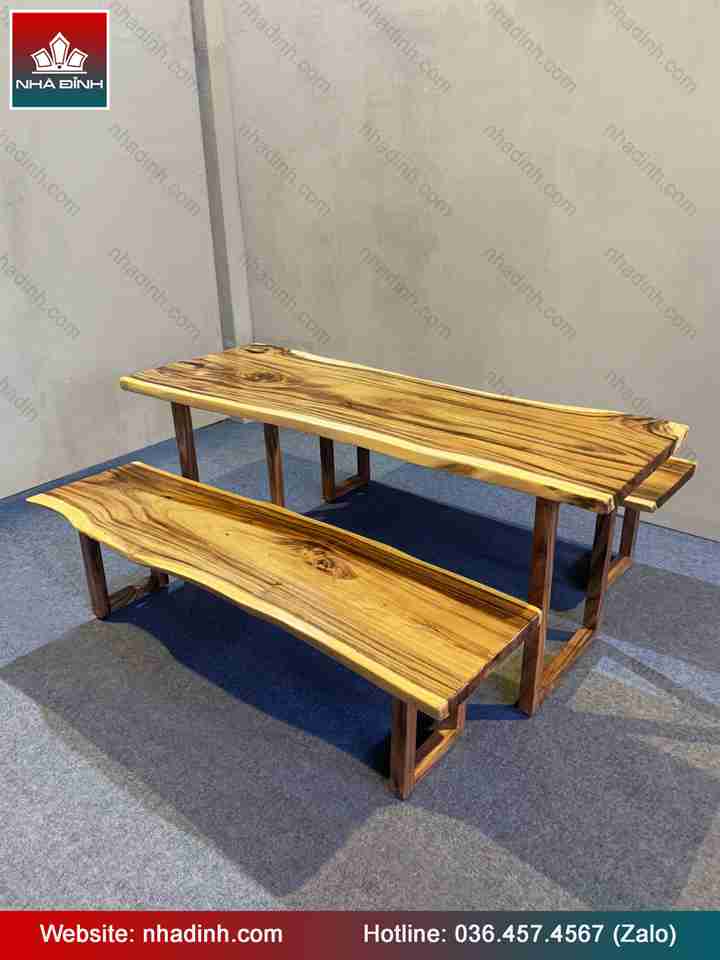 Bàn Ăn Gỗ Me Tây Dài 184 Rộng 63 - 58 - 70 dày 4.6 cm
