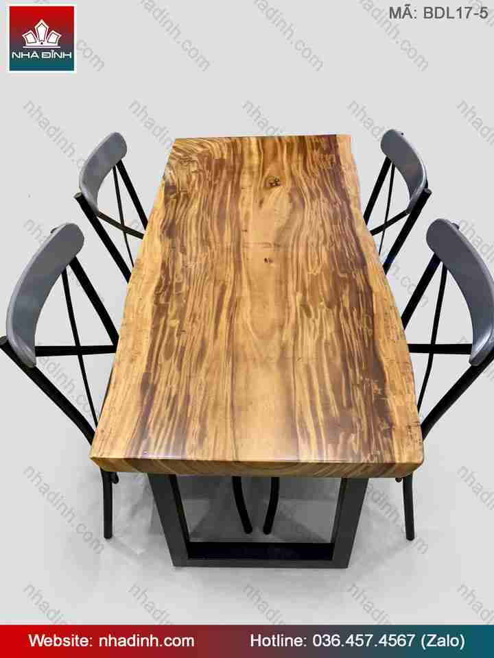 Bàn Ăn Gỗ Me Tây Nguyên Khối dài 1400 rộng 680-610 dày 50 (mm)
