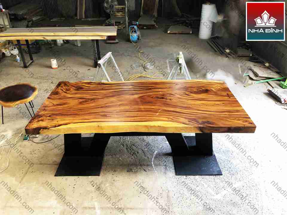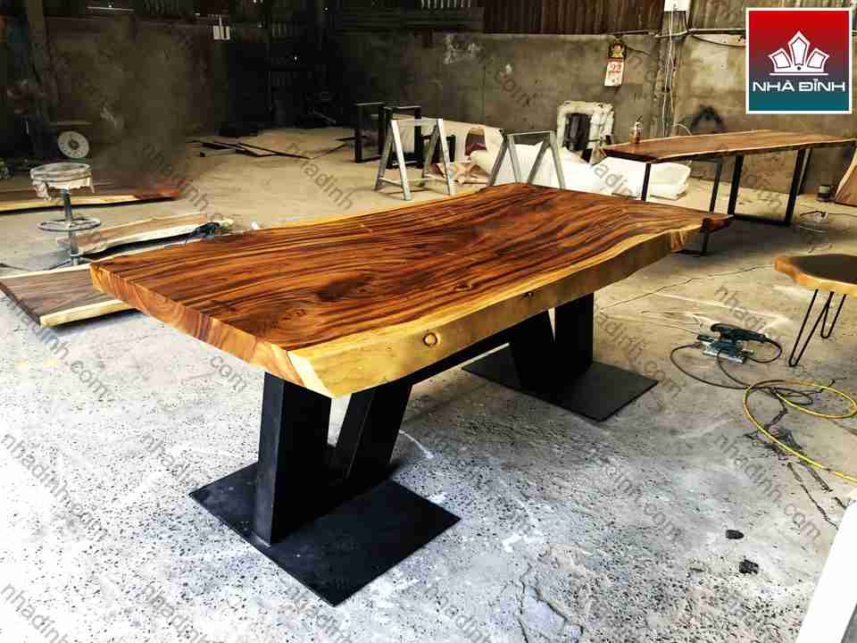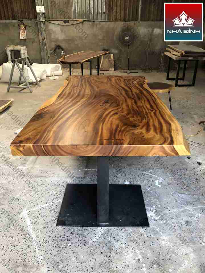 Bàn Ăn Gỗ Me Tây Nguyên Tấm Dài 205 Rộng 103-97-98 Dày 7 (cm)