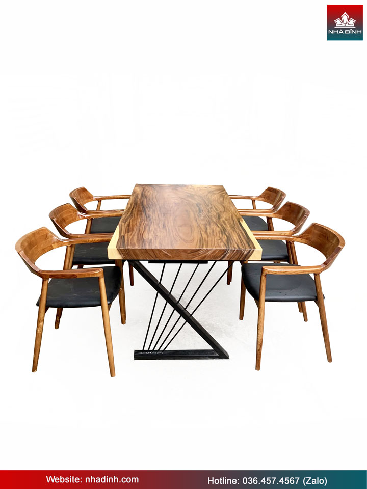 Bàn Gỗ Me Tây Nguyên Khối 6 Ghế Dài 165 Rộng 83 Cao 77 (cm)