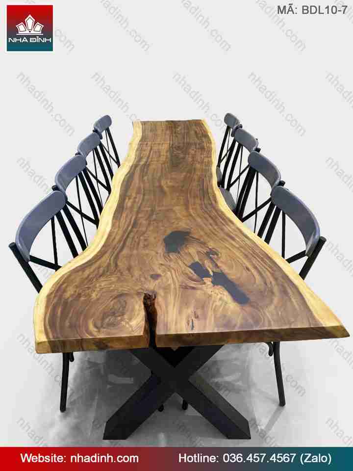 Bàn Gỗ Me Tây Nguyên Khối dài 2m48 rộng 64-56-90 dày 5 (cm)