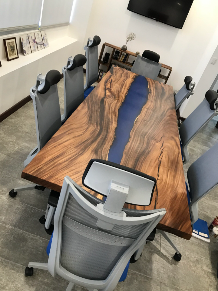 Bàn Họp Gỗ Me Tây Đổ Epoxy Dài 300 Rộng 100 Dày 6 (cm)