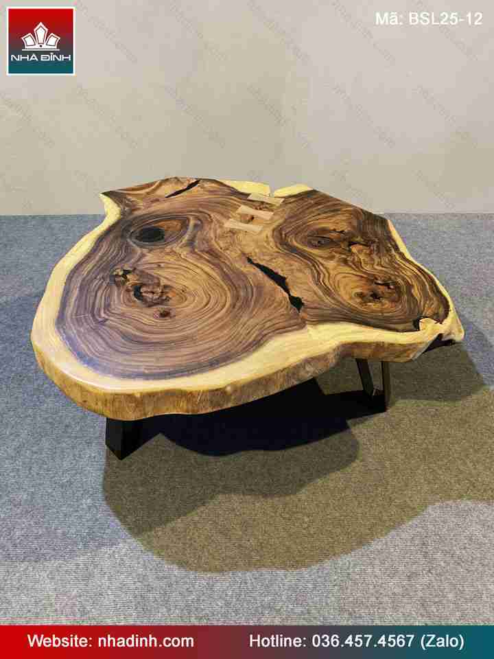 Bàn Sofa Gỗ Me Tây Nguyên Khối Dài 122 Rộng 112 Dày 7 Cao 46 (cm)