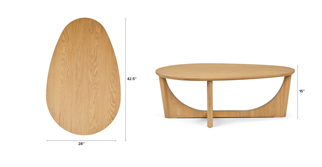 Bàn Trà Gỗ Sồi Hình Quả Trứng Dài 107 Rộng 71 Cao 38 (cm)
