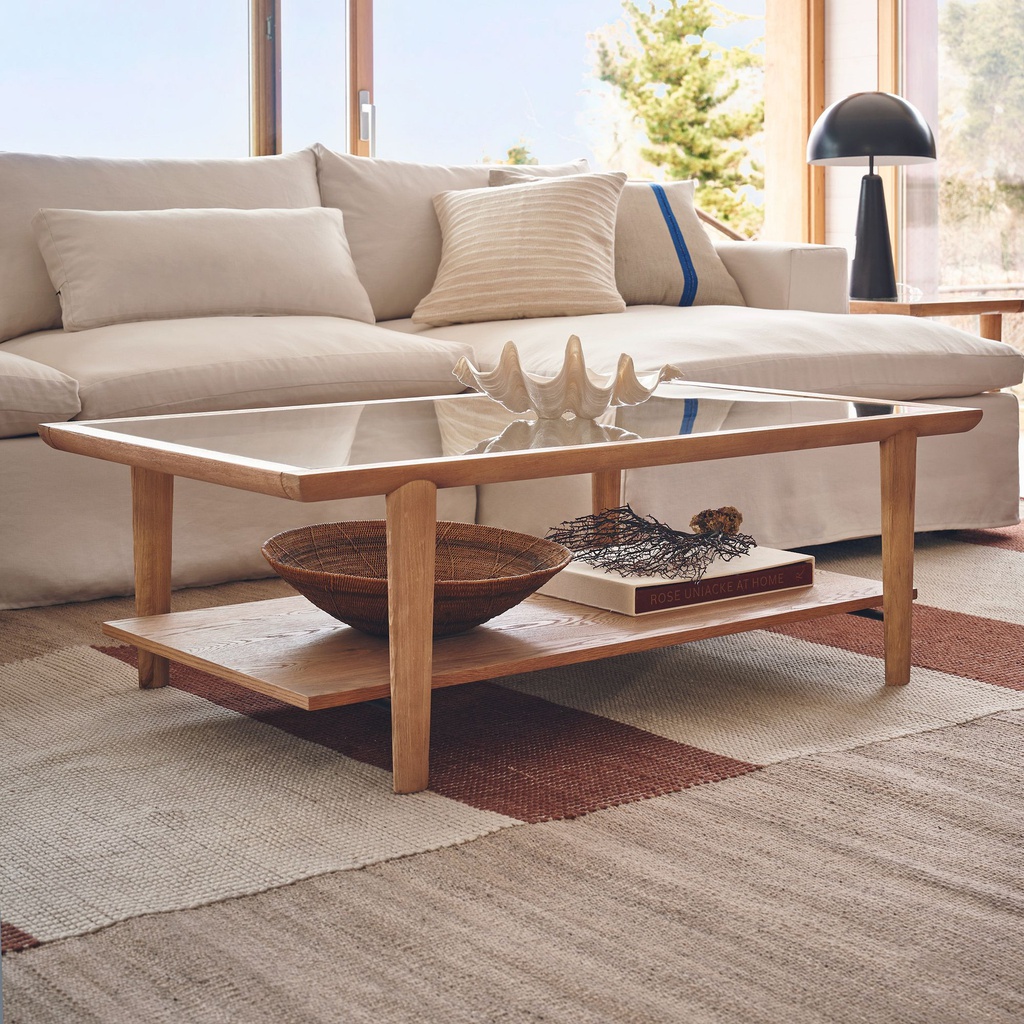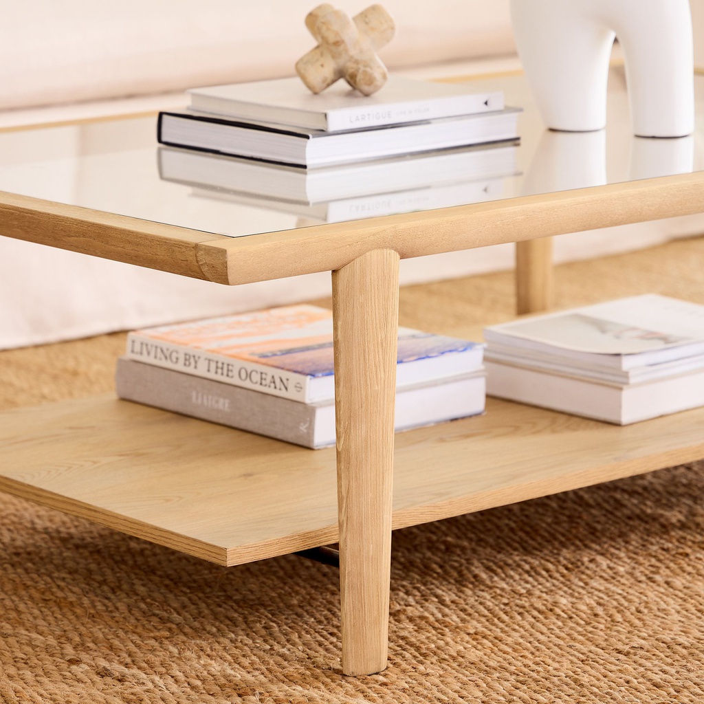 Bàn Trà Gỗ Sồi Mặt Kính Dài 127 Rộng 76 Cao 41 (cm)