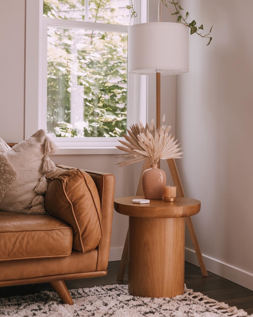 Bàn Trà Gỗ Sồi Tiện Tròn Cao 48 Đường Kính 45 (cm)