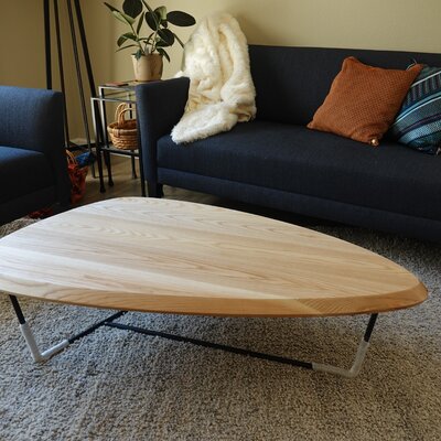 Bàn Trà Hình Tam Giác Gỗ Tần Bì Kết Hợp Chân Sắt Cao 36 Dài 127 Rộng 71 (cm)