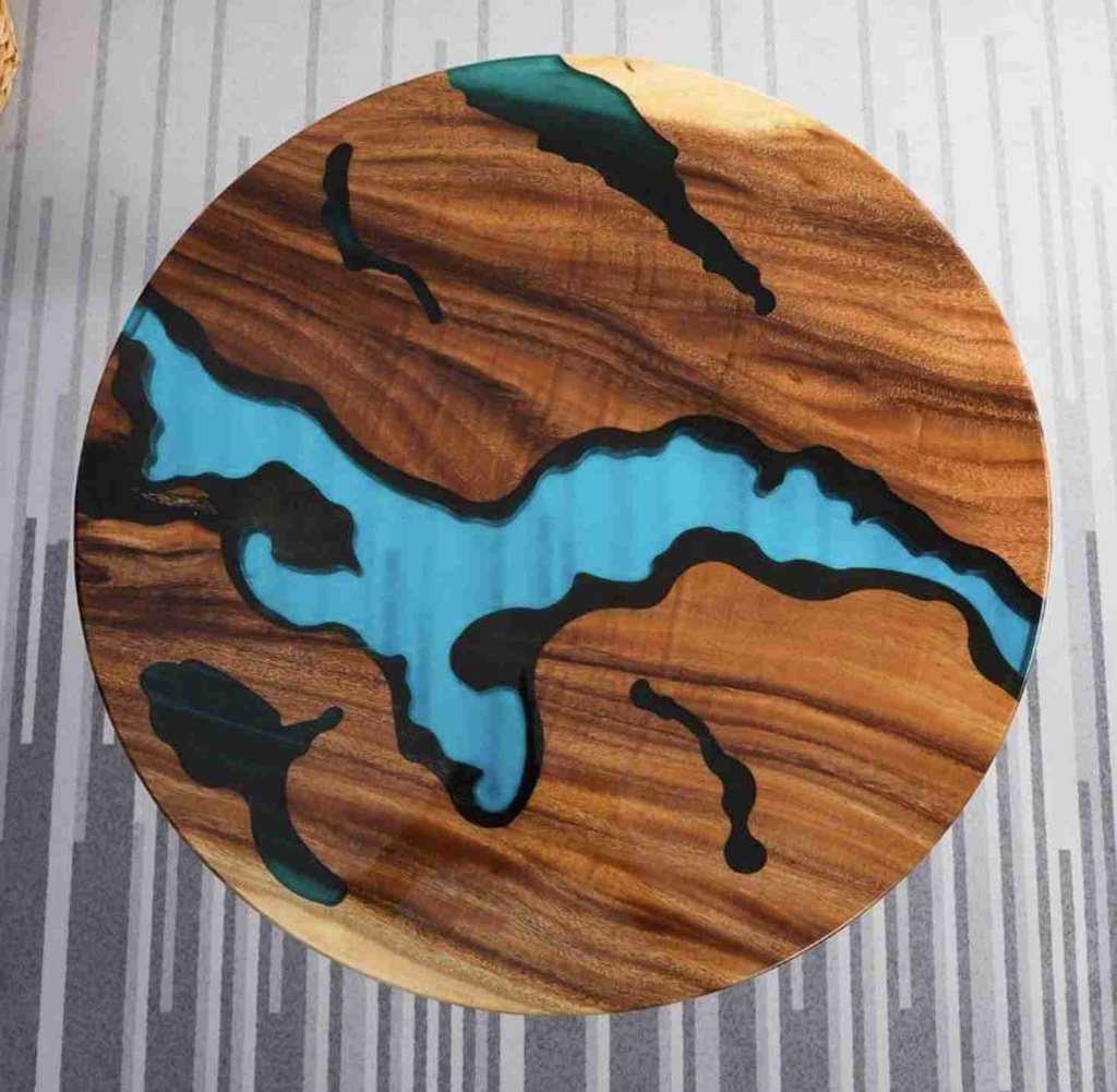 Bàn Trà Tròn Epoxy Gỗ Me Tây Đường Kính 60 Cao 45 (cm)