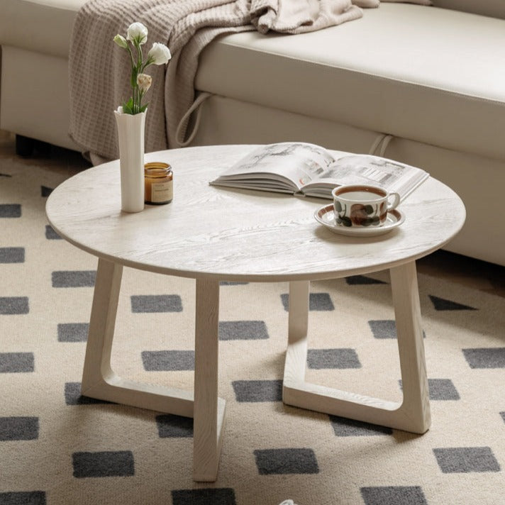 Bàn Trà Tròn Gỗ Sồi Sơn Trắng Đường Kính 75 Cao 40 (сm)