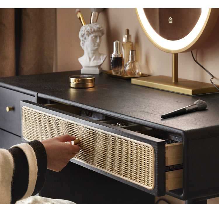 Bàn Trang Điểm Gỗ Sồi Sơn Đen