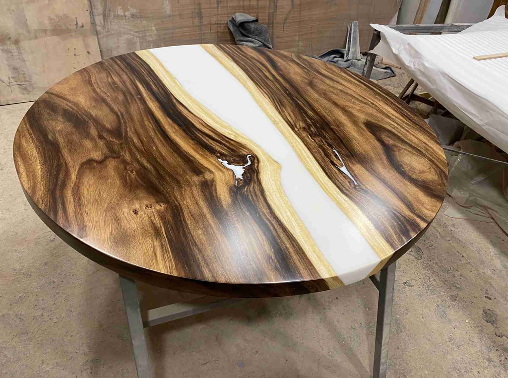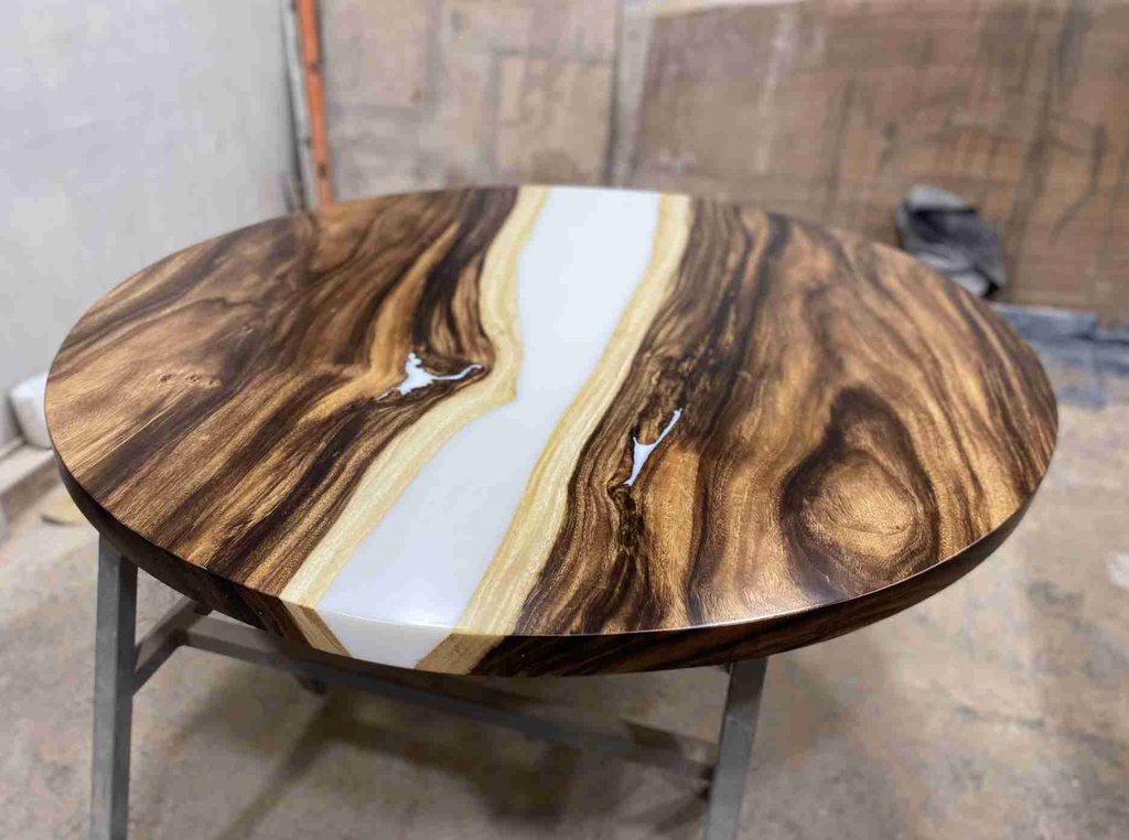 Bàn Tròn Epoxy Gỗ Me Tây Đường Kính 150 Dày 6 (cm)