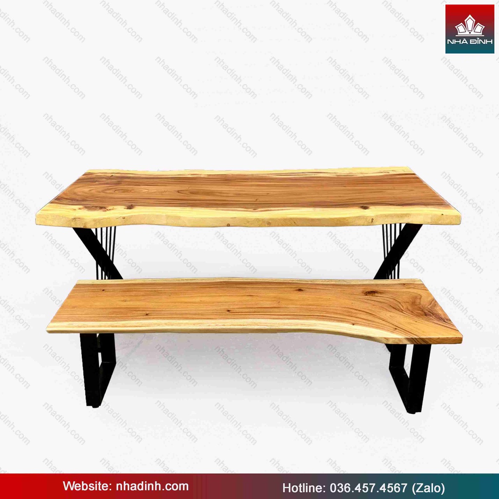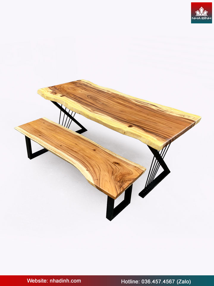 Bộ Bàn 1 Băng Gỗ Me Tây Nguyên Khối Dài 180 Rộng 82-78-79 Dày 4,8 (cm)