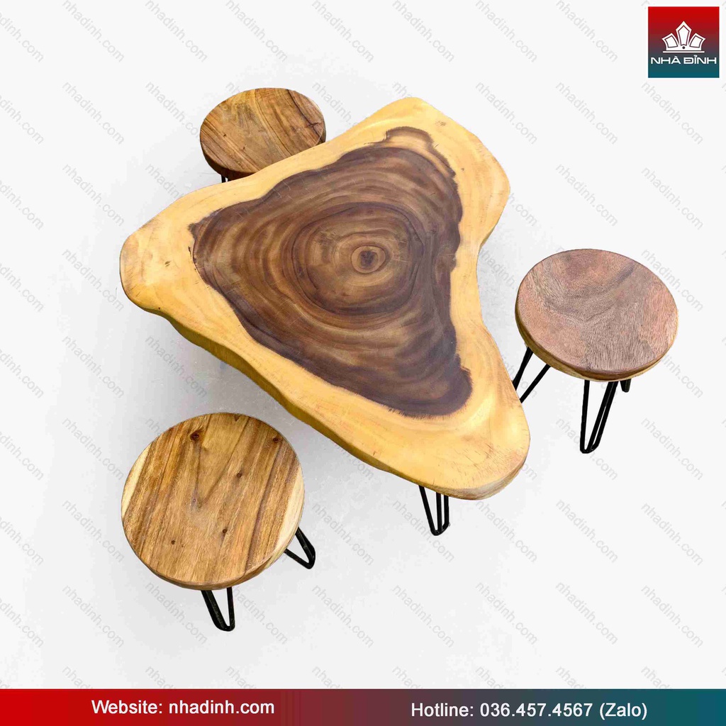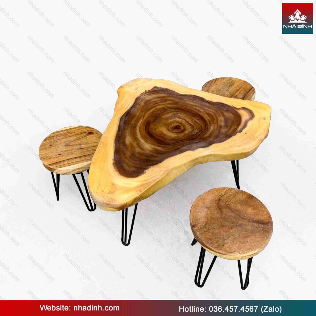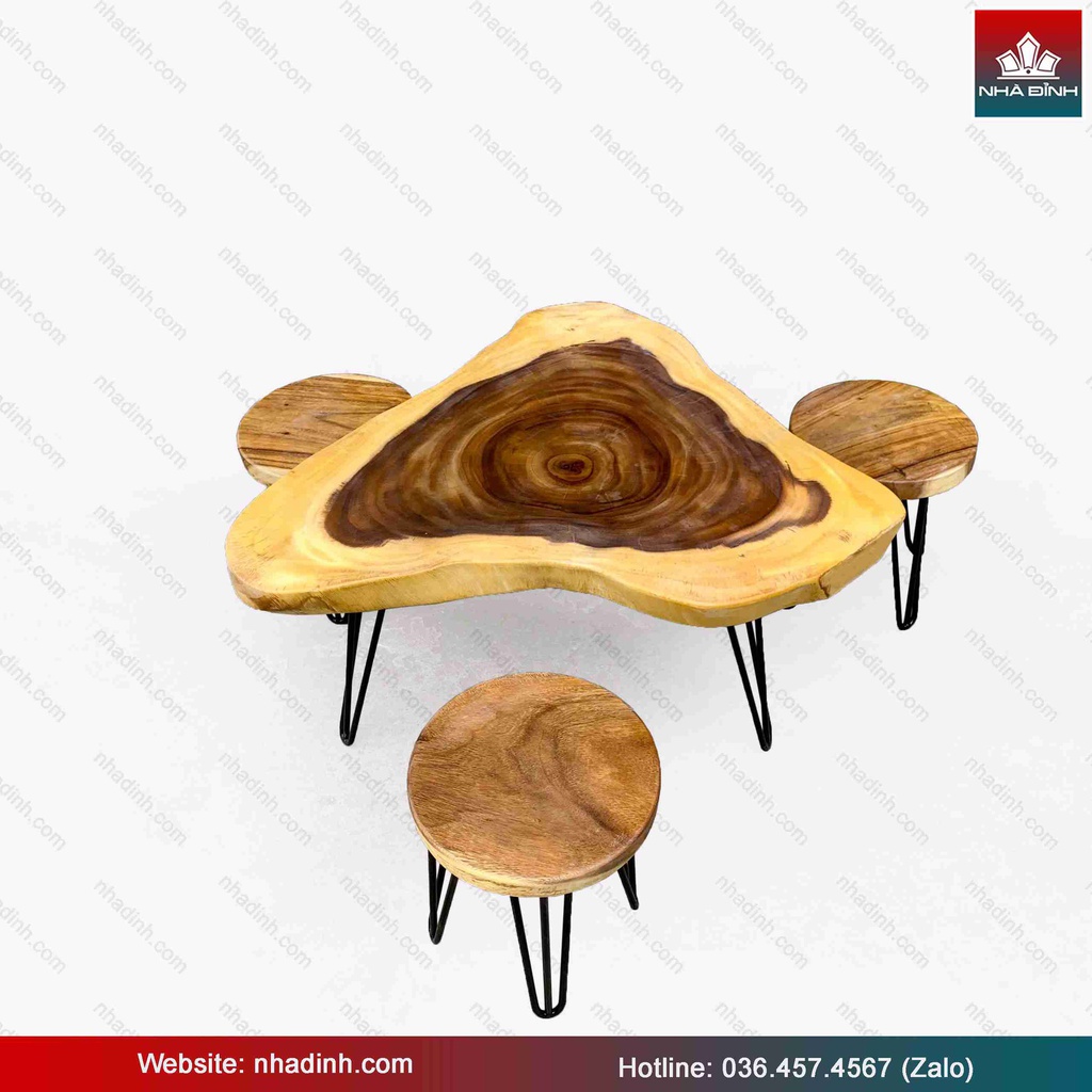 Bộ Bàn Trà 3 Ghế Gỗ Me Tây Nguyên Khối Dài 91 Rộng 67 Cao 45 (cm)