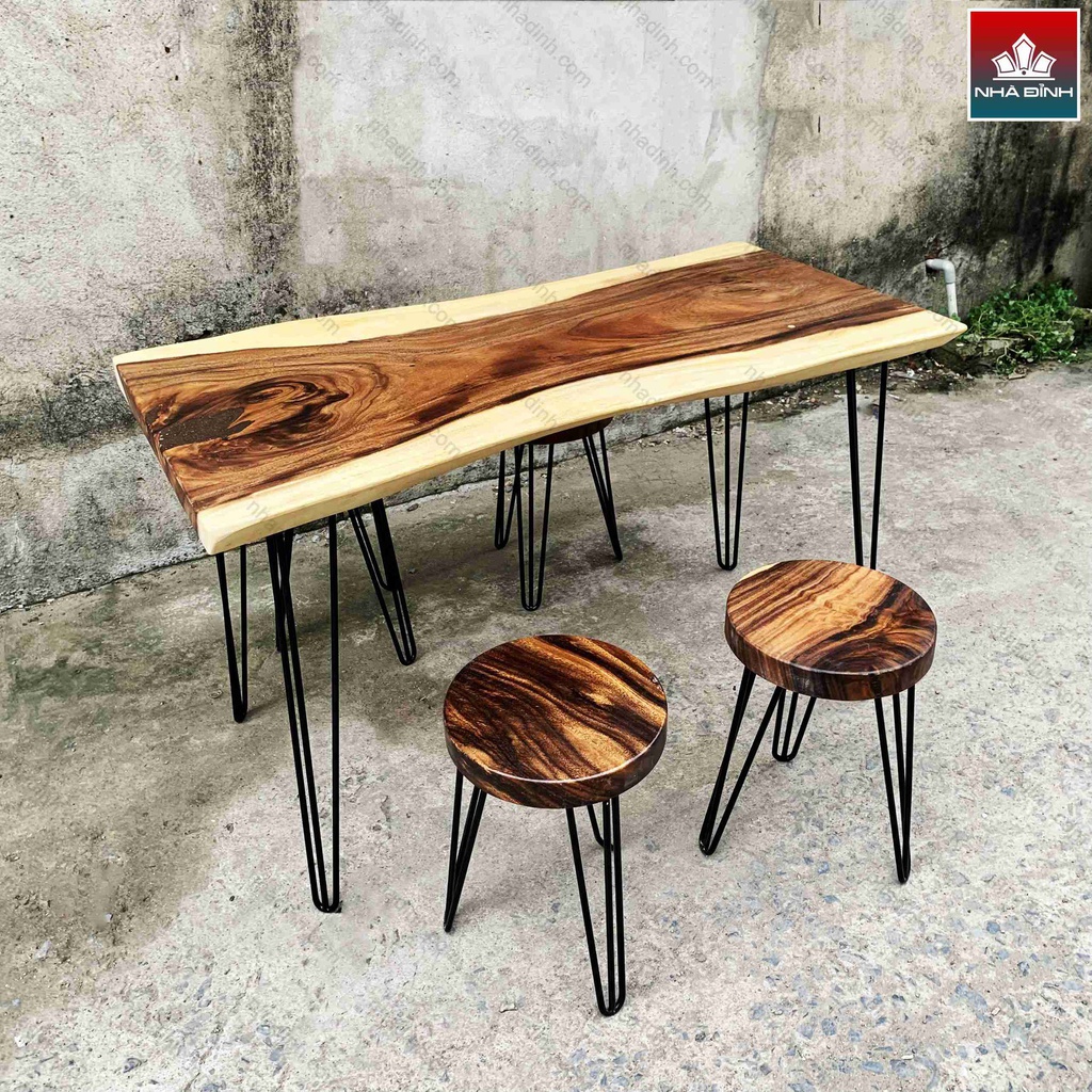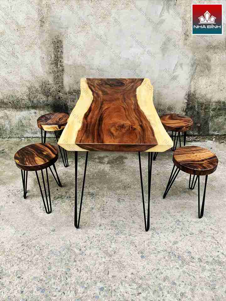 Bộ Bàn Uống Trà 4 Ghế Gỗ Me Tây Nguyên Khối Dài 123 Rộng 60-56-67 Cao 75 (cm)