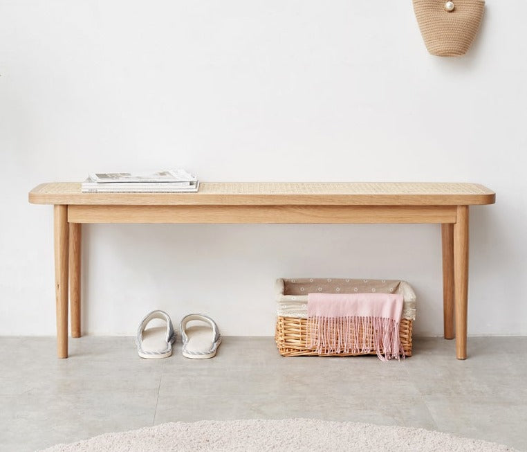 Ghế Băng Gỗ Sồi Mặt Lưới Mây Dài 120 Rộng 28 Cao 43 (сm)