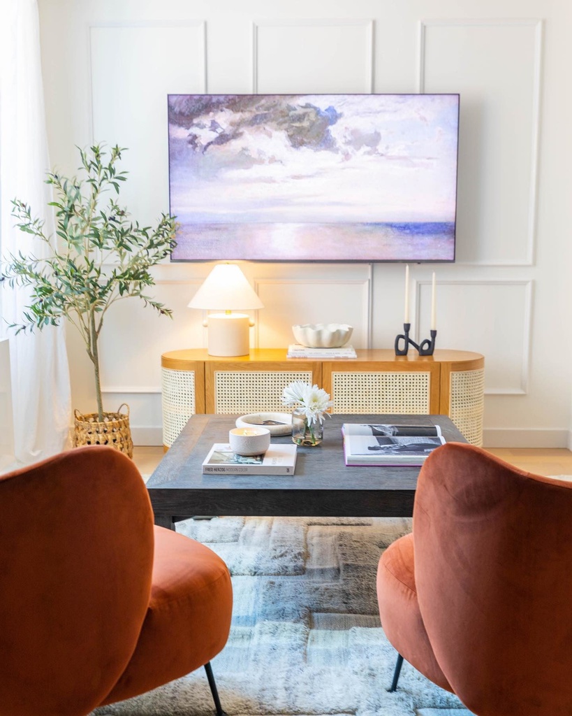 Kệ Tivi Gỗ Sồi Kết Hợp Lưới Mây Mắt Cáo