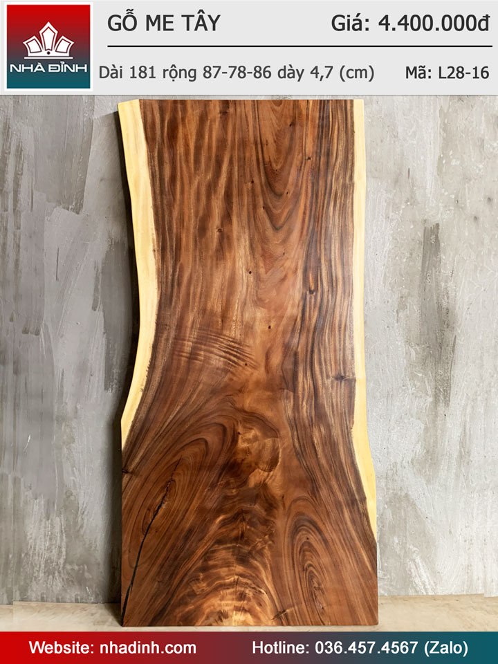 Mặt Bàn Ăn Gỗ Me Tây Nguyên Khối Dài 181 Rộng 87-78-86 Dày 4.7 (cm)