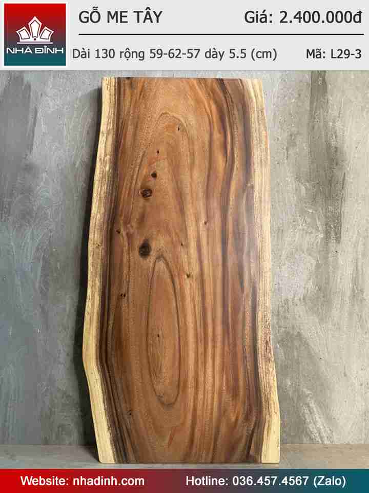 Mặt Bàn Ăn Gỗ Me Tây Nguyên Khối Dài 130 Rộng 59-62-57 Dày 5,5 (cm)