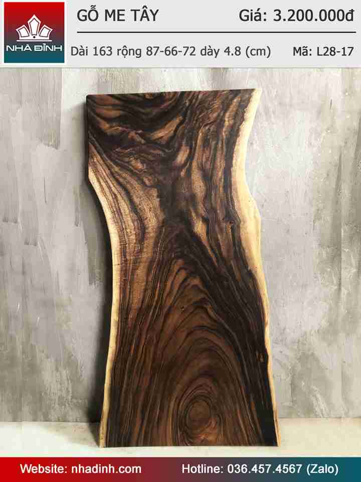 Mặt Bàn Ăn Gỗ Me Tây Nguyên Khối Dài 163 Rộng 87-66-72 Dày 4,8 (cm)