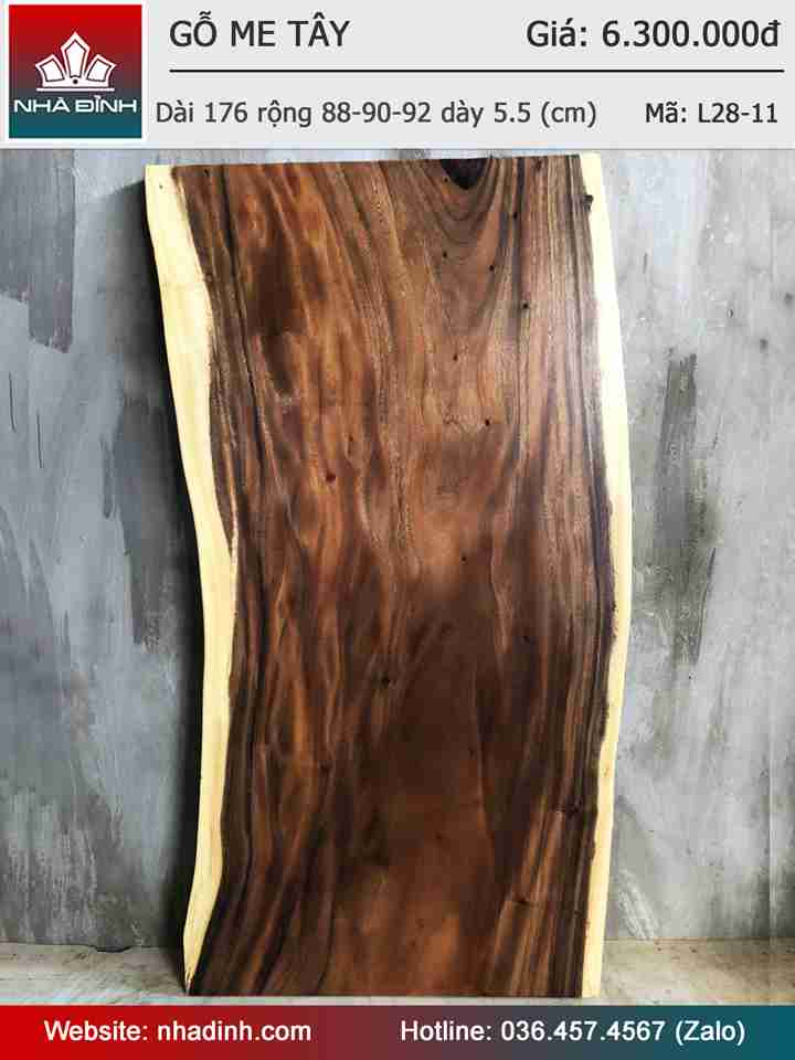 Mặt Bàn Ăn Gỗ Me Tây Nguyên Khối Dài 176 Rộng 88-90-92 Dày 5,5 (cm)