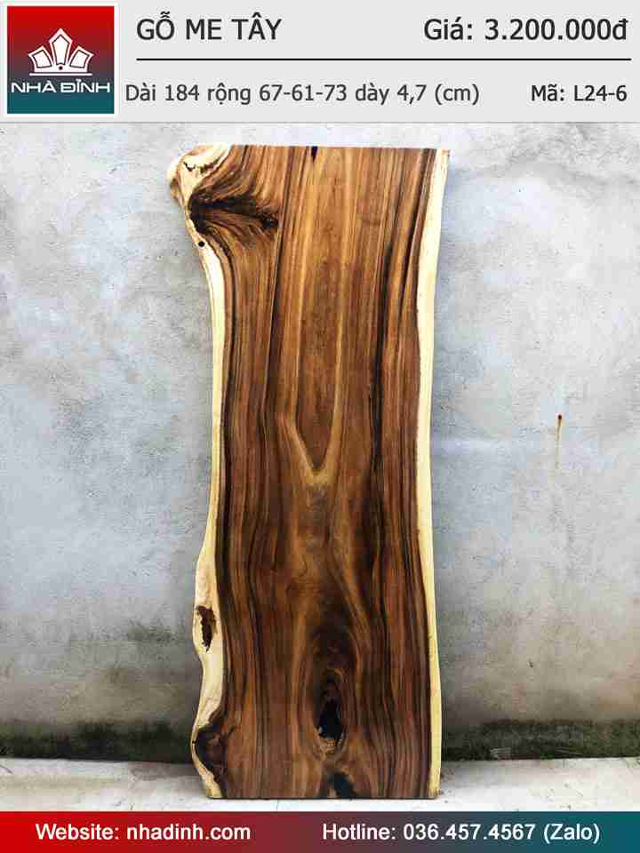 Mặt Bàn Ăn Gỗ Me Tây Nguyên Khối Dài 184 Rộng 67-61-73 Dày 4,7 (cm)