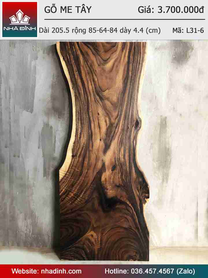 Mặt Bàn Ăn Gỗ Me Tây Nguyên Khối Dài 205,5 Rộng 85-64-84 Dày 4,4 (cm)