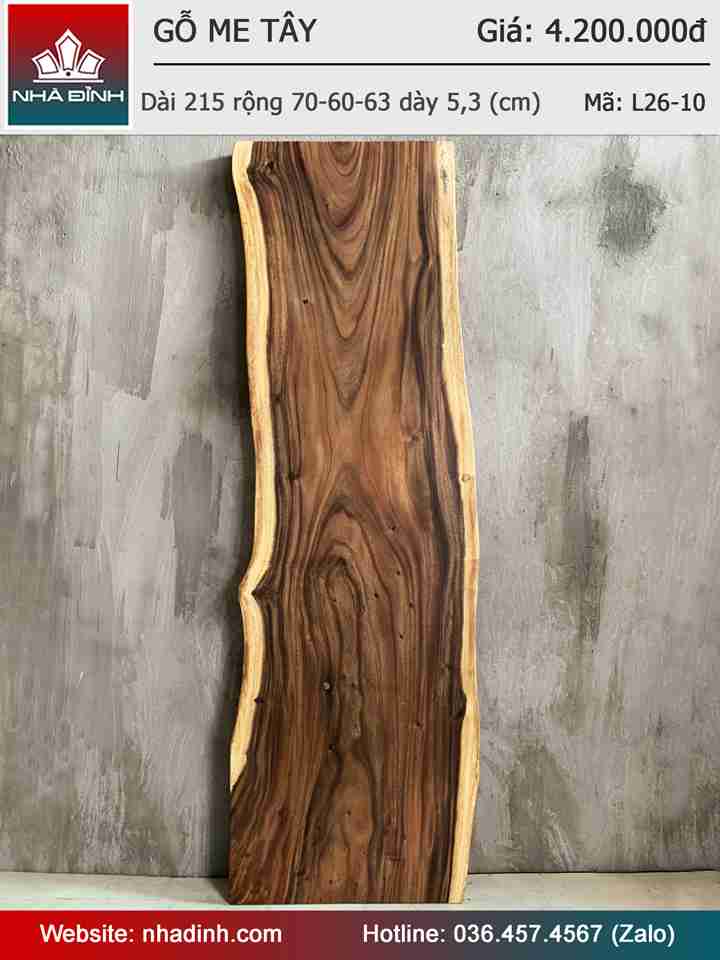 Mặt Bàn Ăn Gỗ Me Tây Nguyên Khối Dài 215 Rộng 70-60-63 Dày 5,3 (cm)