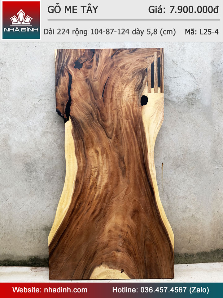 Mặt Bàn Ăn Gỗ Me Tây Nguyên Khối Dài 224 Rộng 104-87-124 Dày 5,8 (cm)