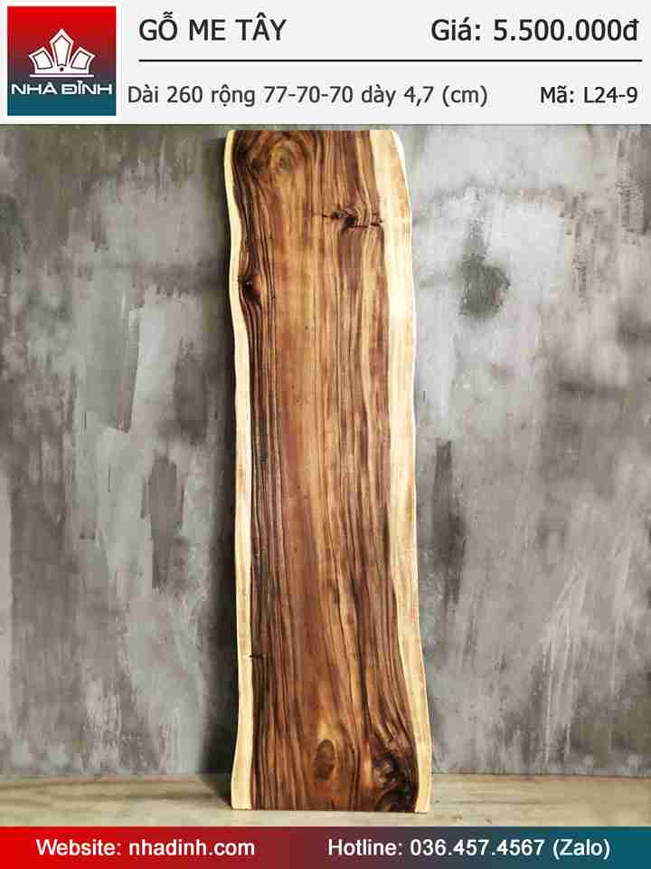 Mặt Bàn Ăn Gỗ Me Tây Nguyên Khối Dài 260 Rộng 77-70-70 Dày 4,7 (cm)