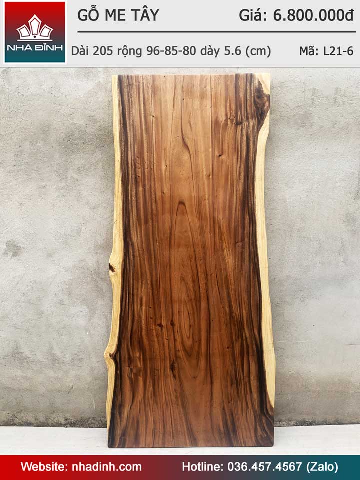 Mặt Bàn Dài Gỗ Me Tây Nguyên Khối Dài 205 Rộng 96-85-80 Dày 5.6 (cm)