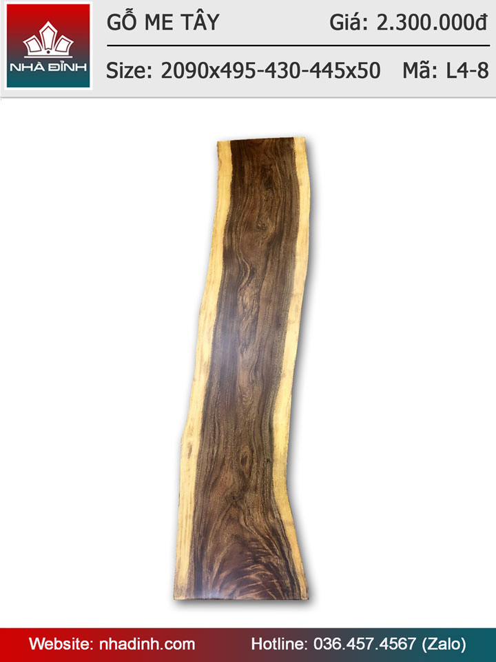 Mặt bàn gỗ Me Tây dài 2m09 rộng 49,5-43-44,5 dày 5cm