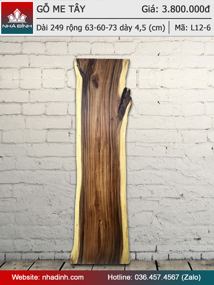 Mặt bàn gỗ Me Tây nguyên khối dài 2490 rộng 630-600-730 dày 45 (mm)