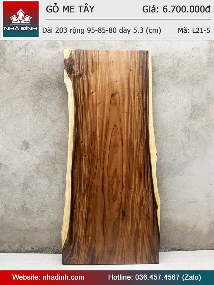 Mặt Bàn Gỗ Me Tây Nguyên Khối Dài 203 Rộng 95-85-80 Dày 5.3 (cm)