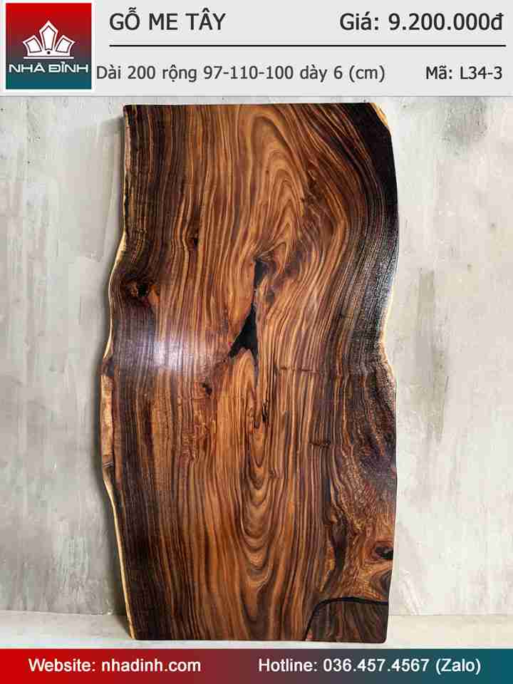 Mặt Bàn Gỗ Me Tây Nguyên Khối Dài 200 Rộng 97-110-100 Dày 6 (cm)