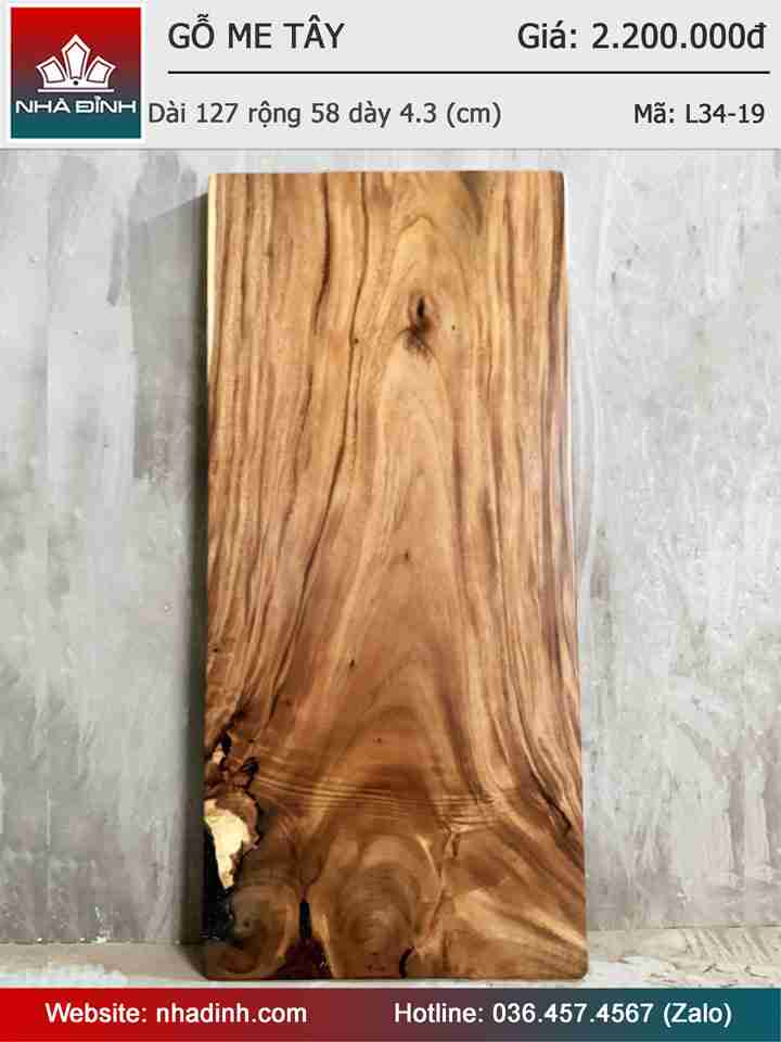 Mặt Bàn Gỗ Me Tây Nguyên Khối Dài 127 Rộng 58 Dày 4.3 (cm)