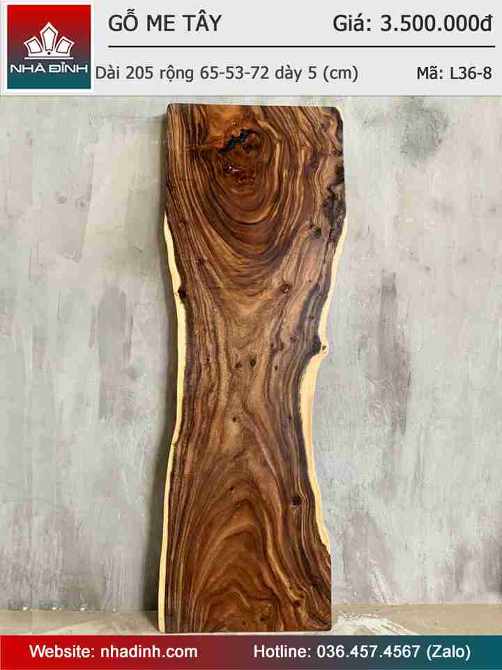 Mặt Bàn Gỗ Me Tây Nguyên Khối Dài 205 Rộng 65-53-72 Dày 5 (cm)
