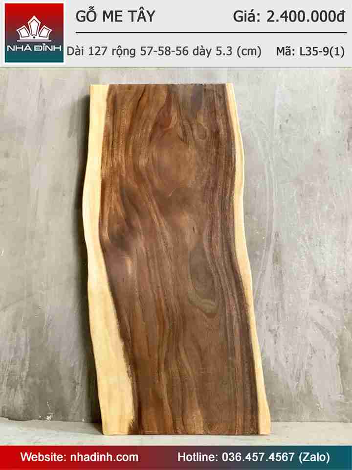 Mặt Bàn Gỗ Me Tây Nguyên Khối Dài 127 Rộng 57-58-56 Dày 5.3 (cm)