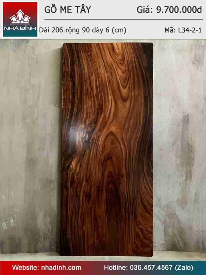 Mặt Bàn Gỗ Me Tây Nguyên Khối Dài 206 Rộng 90 Dày 6 (cm)