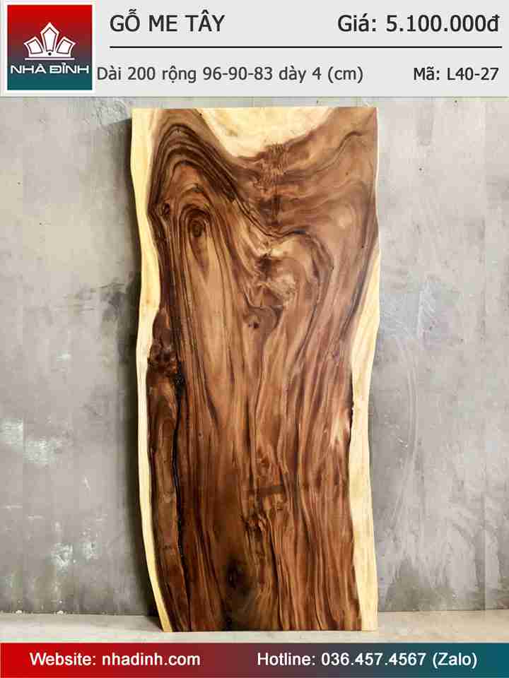 Mặt Bàn Gỗ Me Tây Nguyên Khối Dài 200 Rộng 96-90-83 Dày 4 (cm)