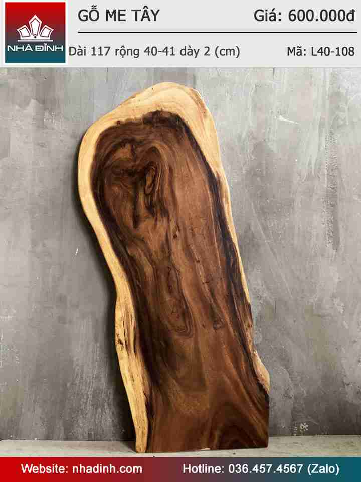 Mặt Bàn Gỗ Me Tây Nguyên Khối Dài 117 Rộng 40-41 Dày 2 (cm)