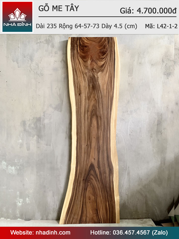 Mặt Bàn Gỗ Me Tây Nguyên Khối Dài 235 Rộng 64-57-73 Dày 4.5 (cm)