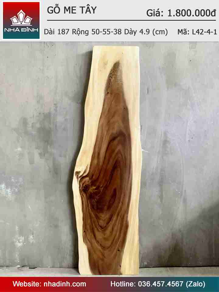 Mặt Bàn Gỗ Me Tây Nguyên Khối Dài 187 Rộng 50-55-38 Dày 4.9 (cm)