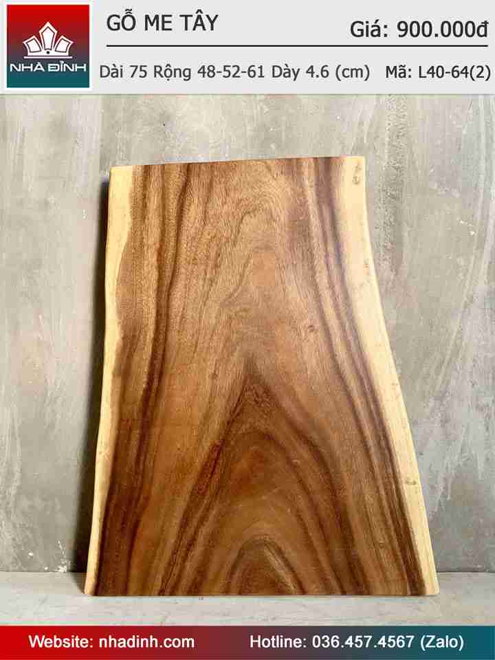 Mặt Bàn Gỗ Me Tây Nguyên Khối Dài 72 Rộng 48-52-61 Dày 4.6 (cm)