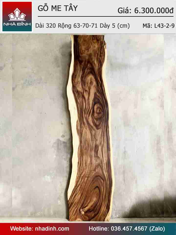 Mặt Bàn Gỗ Me Tây Nguyên Khối Dài 320 Rộng 63-70-71 Dày 5 (cm)